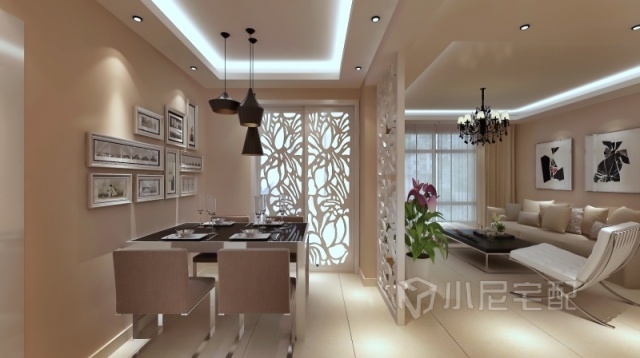 入門,即能將室內(nèi)風(fēng)光盡收眼底,一室朗朗開闊的景致,予人輕快舒宜之感受。