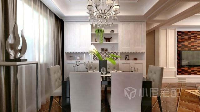 與客廳相對望的餐廳,在開放設(shè)計下連結(jié)一氣,開闊之感自然應(yīng)運而生,予人朗朗大氣之感受。