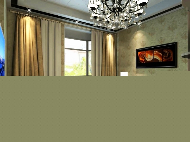 暖色的壁紙搭配白色的沙發(fā),深色窗簾,體現(xiàn)客廳的舒適性