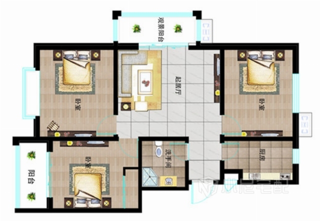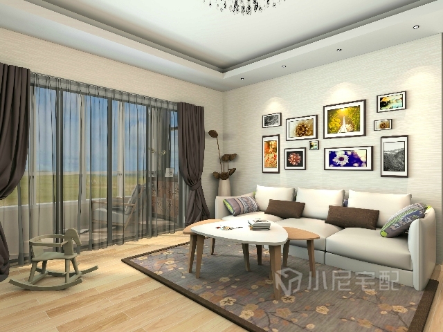 稍稍偏深一點的沙發(fā)背景墻,剛好用來掛放裝飾畫。