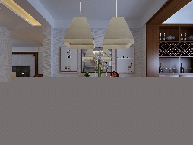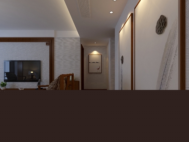窄框的茶鏡增加了立體感,木地板墻飾體現(xiàn)人對木質(zhì)的自然舒適。