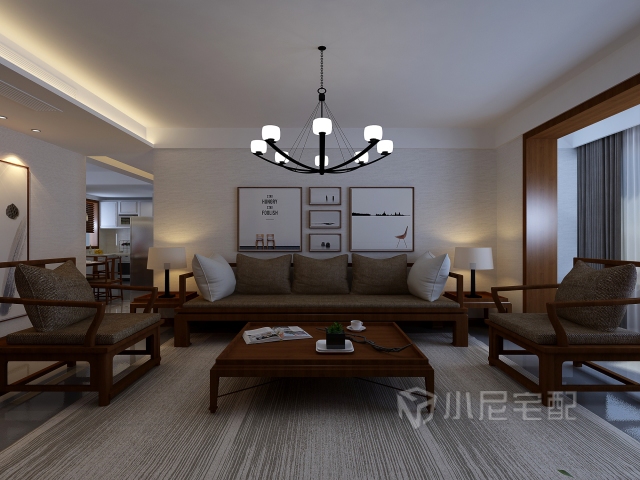 木制沙發(fā)和掛畫顯出客廳的內(nèi)涵
