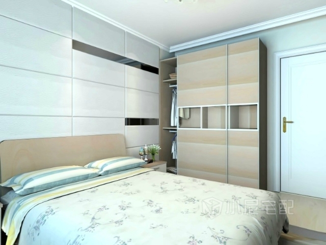臥室以淡然明亮的色調(diào)出現(xiàn),整個(gè)面積并不大,由于臥室的核心設(shè)計(jì)是床與衣柜,所以除了擺設(shè)簡約的雙人床和臥室必備的衣柜以外,沒有再過多的放置其它物品。整個(gè)臥室呈現(xiàn)出一種淡靜的清新感,簡約而素雅。