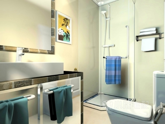 藍色的點綴,放在衛(wèi)生間中,讓人心情舒暢