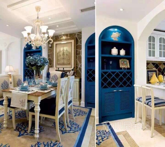 藍(lán)色的酒柜白色的墻壁,很好的展現(xiàn)了地中海的韻味。