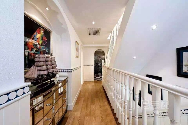 白色的欄桿和墻壁使空間顯得干凈整潔,裝飾物的擺放更起點(diǎn)綴作用。