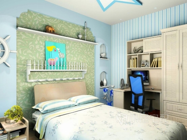 小尼宅配這套兒童家具,加上藍(lán)色的計(jì)調(diào),清新、快樂(lè)