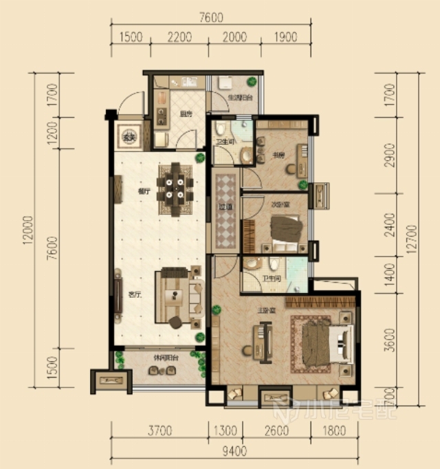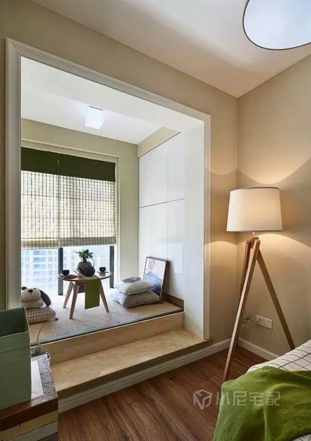 榻榻米設(shè)計(jì),擺一張茶水桌,方便小倆口談心、休憩。朋友來(lái)了也多了一個(gè)招待區(qū)域。