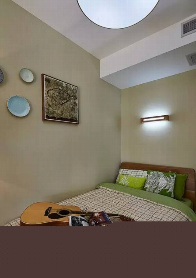 次臥相對(duì)于簡(jiǎn)單一些,墻上的掛盤(pán)藝術(shù)增加了格調(diào)。