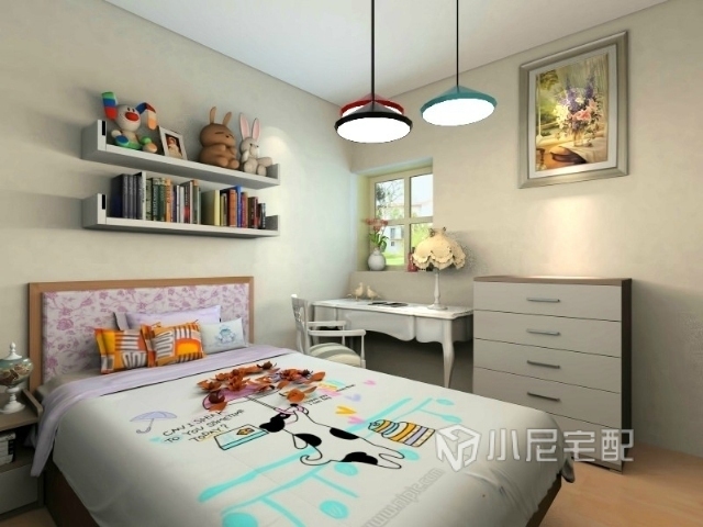 墻上的裝飾品色彩鮮艷,凸顯孩子的本性。