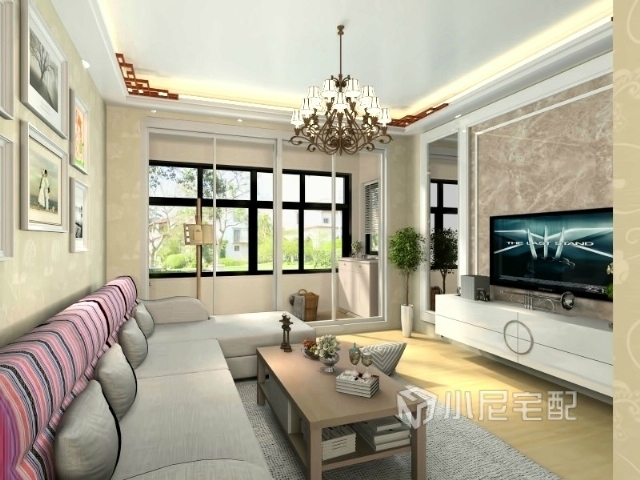 客廳簡(jiǎn)潔大方,整體色調(diào)偏暖,給人溫馨的感覺。