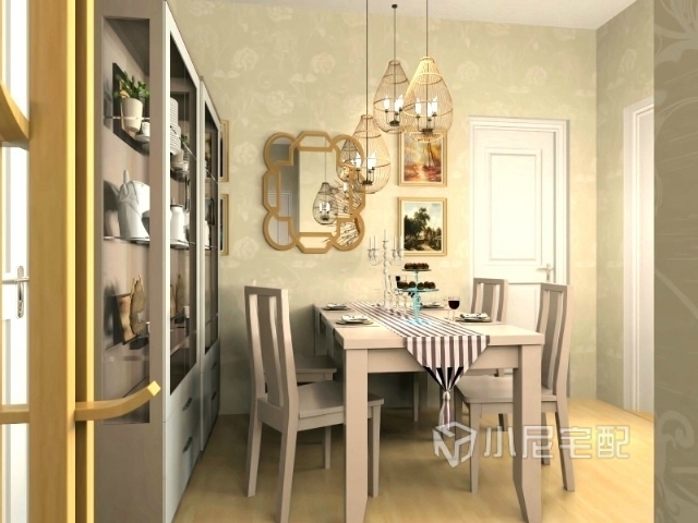 餐廳與整體環(huán)境相融合,背后的酒柜更顯大氣。