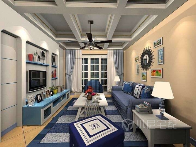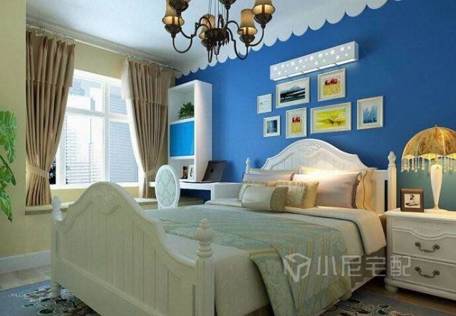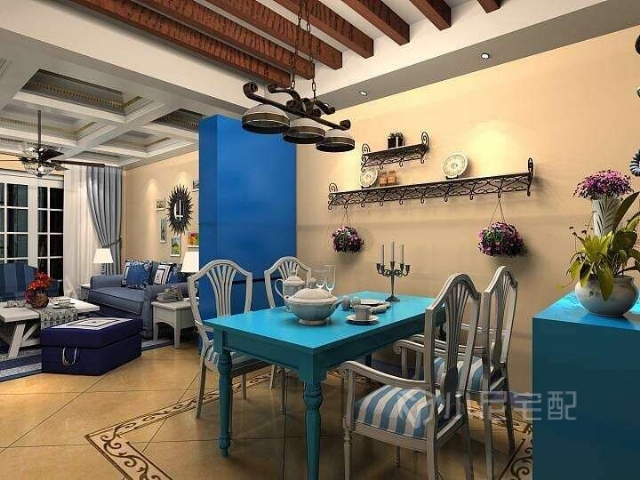 地中海風(fēng)格的靈魂就是“蔚藍色的浪漫情懷,海天一色、艷陽高照的純美自然”。設(shè)計中添加咖色以中和色調(diào),爛漫中不失沉穩(wěn)
