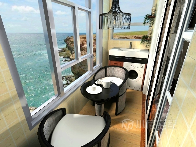 沒事來陽臺喝喝茶,旁邊有洗衣機,很方便