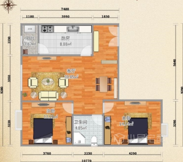 78.64㎡#兩室兩廳一衛(wèi)#現(xiàn)代