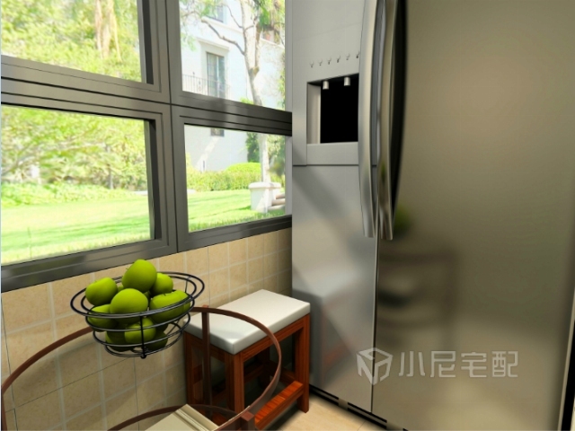 廚房外面就是陽(yáng)臺(tái),買菜的時(shí)候在這里摘菜,需要的都在冰箱里,看看外面人來(lái)人往