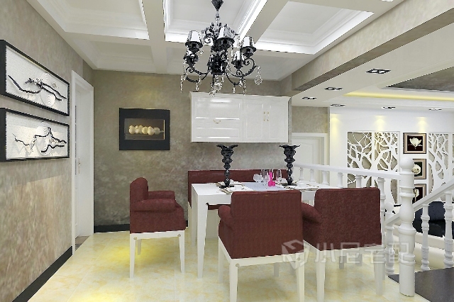 餐廳吊頂采用了立體的粗線條吊頂,經(jīng)典帶有一絲古典風(fēng)的餐桌。在蜂窩造型的帶動(dòng)下給我們的用餐帶來(lái)無(wú)盡的樂(lè)趣!