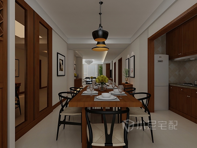 餐桌椅和燈與木色的恰當(dāng)?shù)娜诤?/pre>