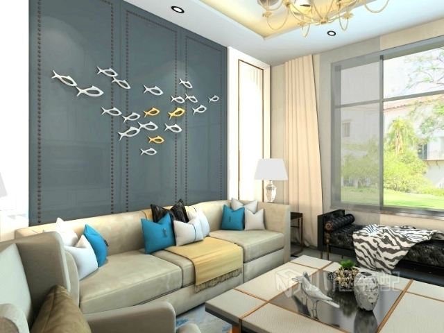 素色的沙發(fā),搭配幾個(gè)藍(lán)色的抱枕,更加的漂亮