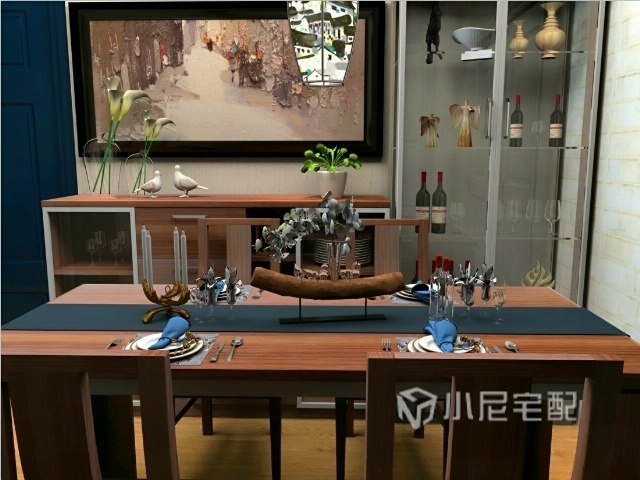 深色的餐桌椅,配上精致的燈飾,使整個空間硬朗而又華麗、優(yōu)雅。