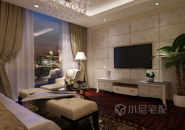 精致的軟包背景墻圖案與家具呼應(yīng)協(xié)調(diào)。