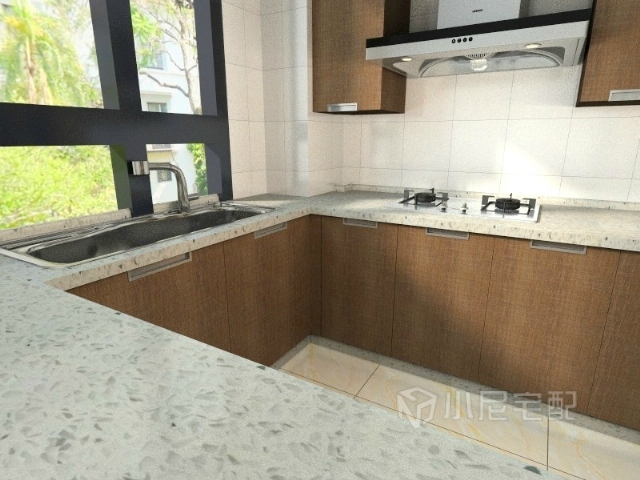 餐桌顏色和廚房門色彩相呼應(yīng)。