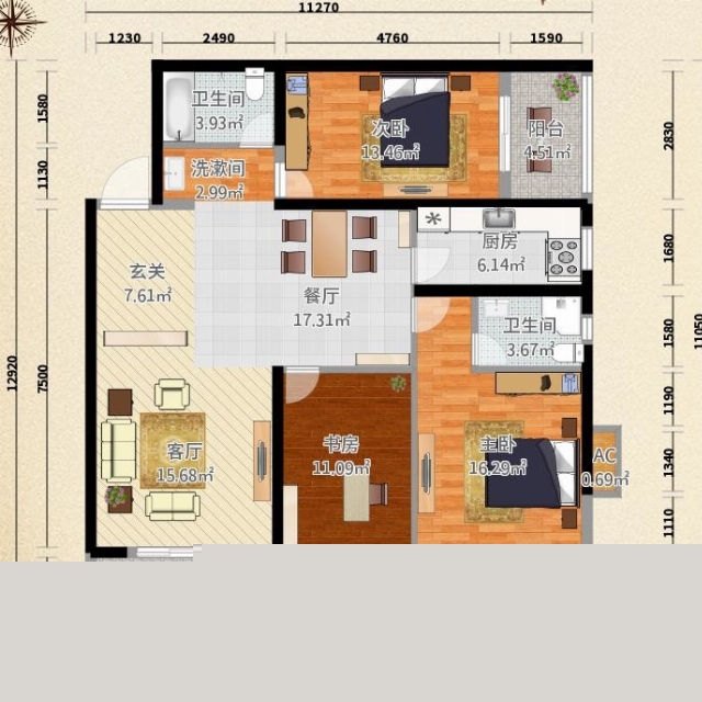 125㎡#兩室兩廳兩衛(wèi)#中式