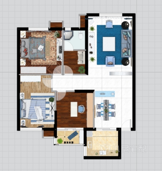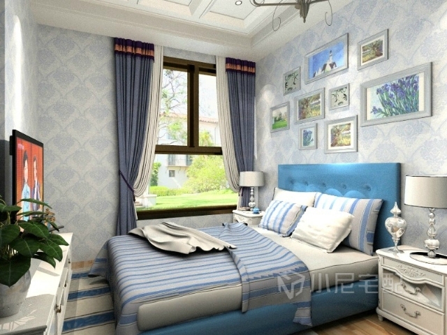 空間主要以藍色白色為主調(diào),精美的裝飾物使空間有錦上添花的作用,使人眼前一亮,整個氣氛既溫暖又休閑。