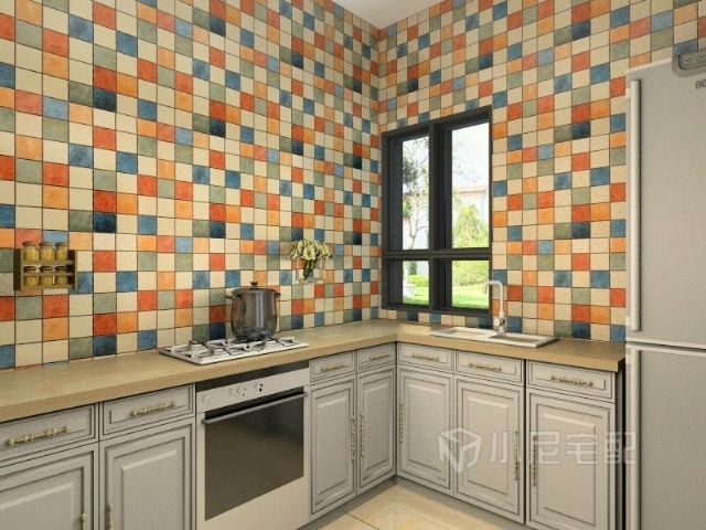 顏色豐富的墻磚和白色的櫥柜搭配,充滿活力。