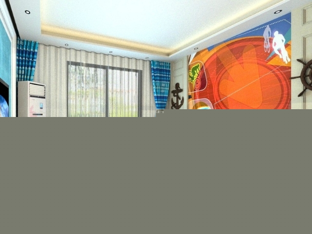 藍白為主調(diào),色彩對比強烈的背景墻增添生機。