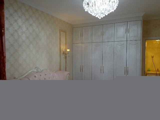 主臥衣柜吸塑門加壁紙背景使臥室更加浪漫