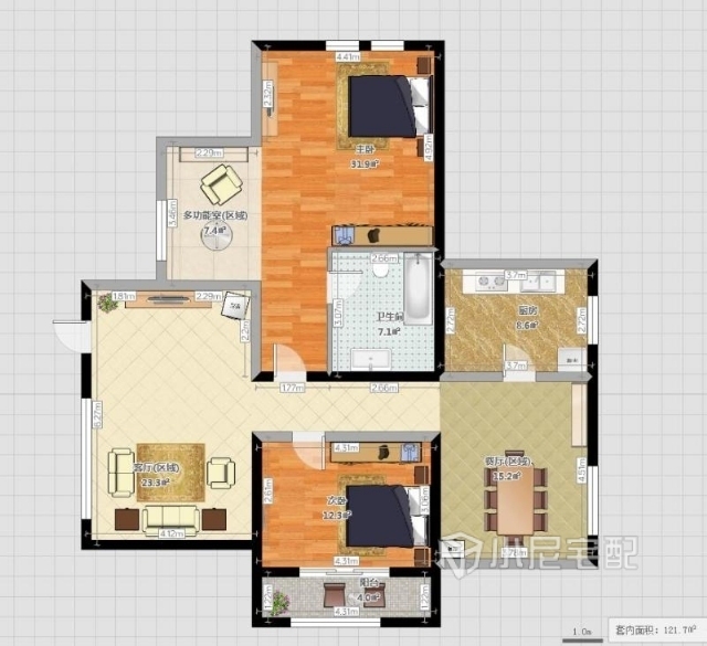 仿實木紋理,在青黛色的搭配下有種自然清新的感覺。