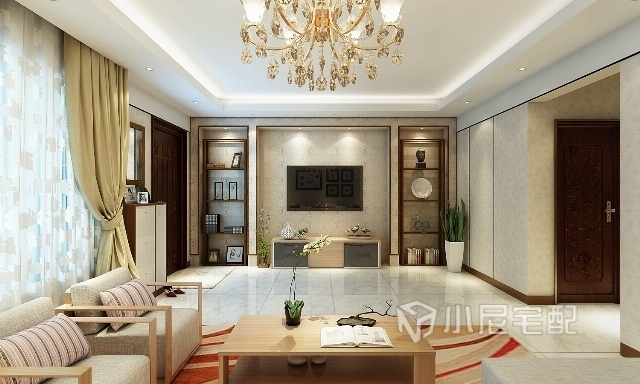影視墻使用簡單的線條分割,可以把收藏的物品置入其中。