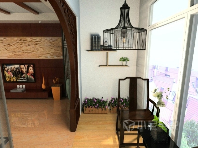 該戶型為中式裝修風格,通過各種中國元素體現(xiàn)東方裝飾的美,整體空間裝飾以紅色,胡桃色為主,使東方意蘊更加鮮明