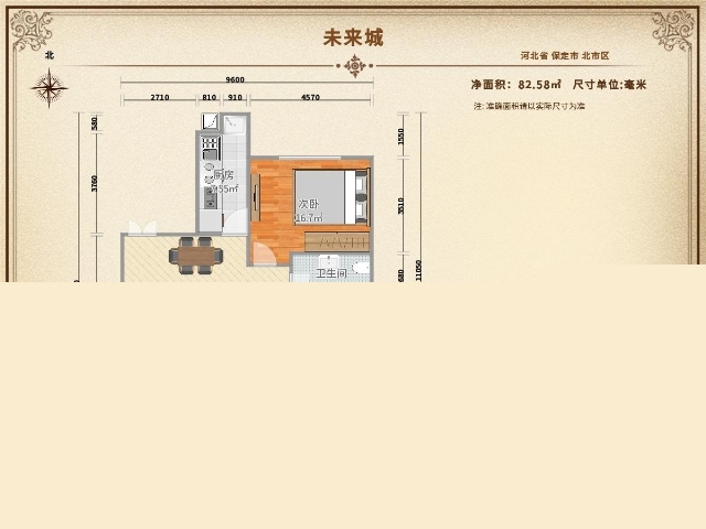 次臥戶型采光較好,所以也采用胡桃色,與整體風格協(xié)調(diào)