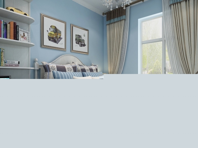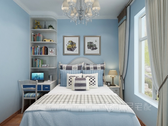 清新海藍(lán):明快純凈的天空顏色,讓臥室整體變得非常得寧靜淡定。但是全部用藍(lán)色未免單調(diào),因此床品、地毯、窗簾等布藝都選用了具有豐富圖案的款式。