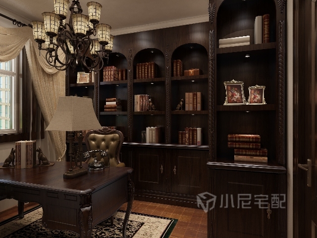 書房簡單實用,美式家居的書房簡單實用,但軟裝頗為豐富,各種象征主人過去生活經(jīng)歷的陳設(shè)一應(yīng)俱全,被翻卷邊的古舊書籍、顏色發(fā)黃的航海地圖、鄉(xiāng)村風(fēng)景的油畫、一支鵝毛筆……即使是裝飾品,這些東西也足以為書房的美式風(fēng)格加分。