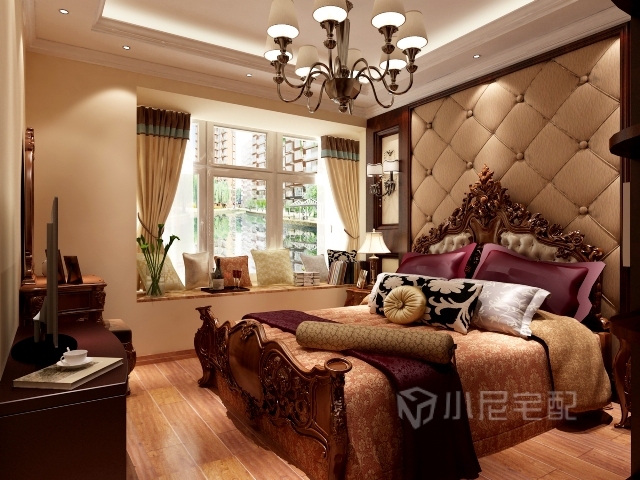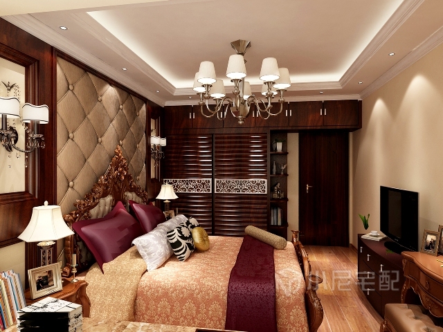 主臥室布置較為溫馨,作為主人的私密空間,主要以功能性和實用舒適為考慮的重點,一般的臥室不設(shè)頂燈,多用溫馨柔軟的成套布藝和軟裝來裝點,同時在軟裝和用色上非常統(tǒng)一。