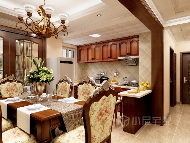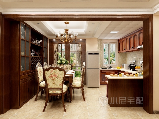 廚房開敞 廚房在美國人眼中一般是開敞的(由于其飲食烹飪習(xí)慣),同時需要有一個便餐臺在廚房的一隅,還要具備功能強(qiáng)大又簡單耐用的廚具設(shè)備,如水槽下的殘渣粉碎機(jī),烤箱等。