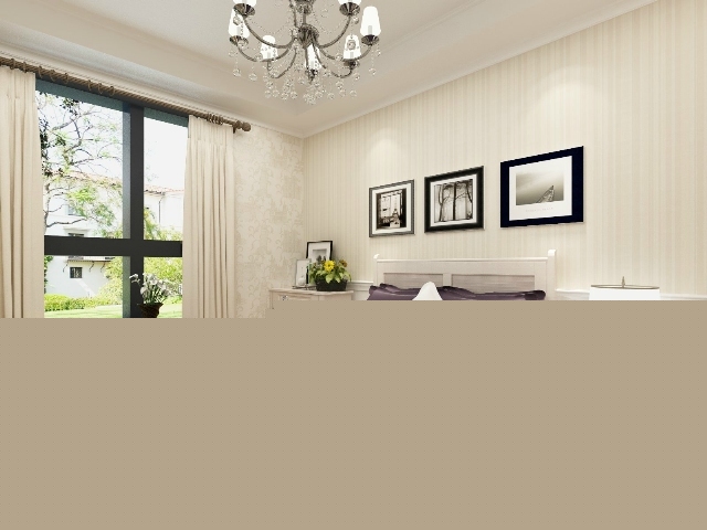 淡綠色的臥室背景墻,潔白的窗簾,給臥室營造一種嫻靜和清新的感覺。