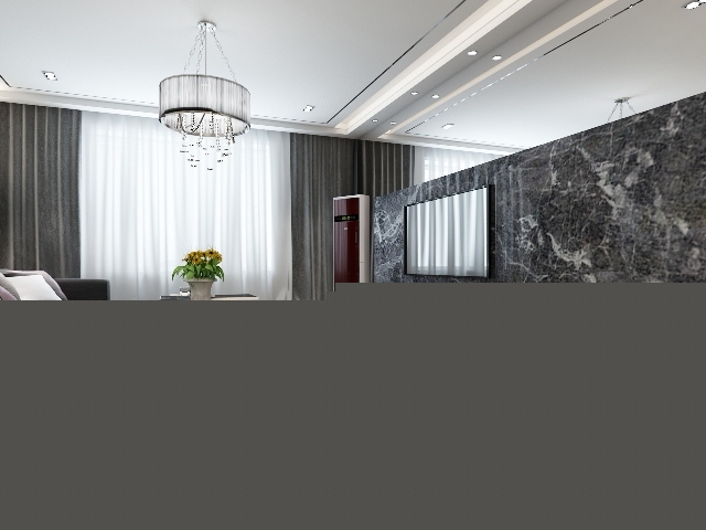 客廳電視墻采用石材和鏡面的處理,更具現(xiàn)代氣息
