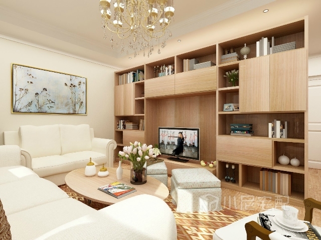 一整面電視墻既有強大的儲物功能,又起到隔斷的作用。