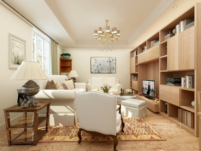客餐廳有兩扇大窗戶,使室內(nèi)空間光線充足明亮,選用金絲胡桃的家具搭配白色軟裝,烘托出整個家的溫馨氛圍。