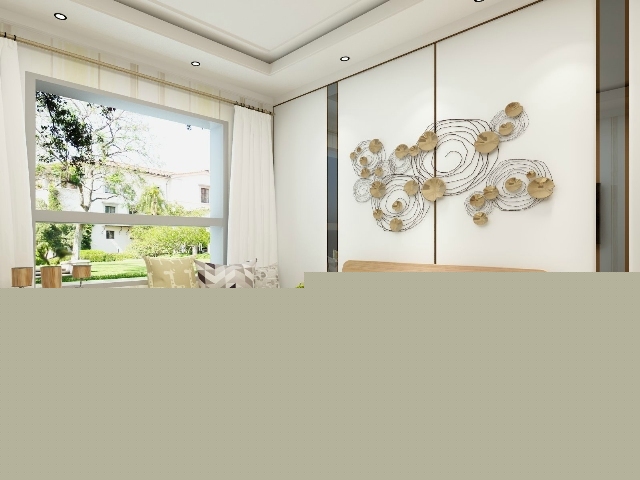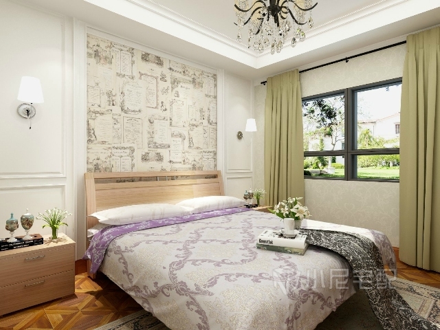 沒有太多的裝飾,臥室背景墻和地毯與窗簾色彩上融為一體。