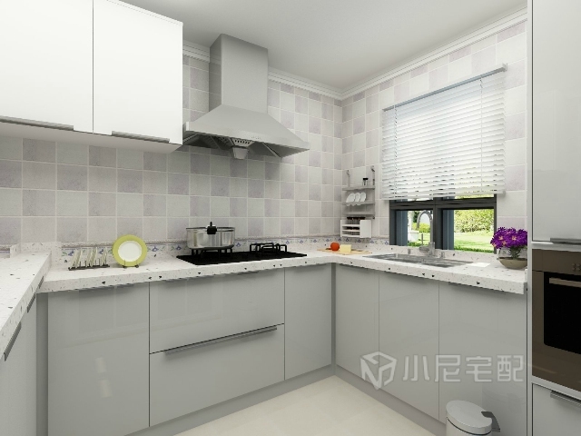 簡約的櫥柜,淺色的石英石臺面,耐磨,耐劃,實用好看。