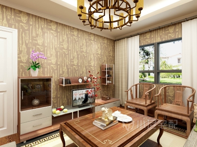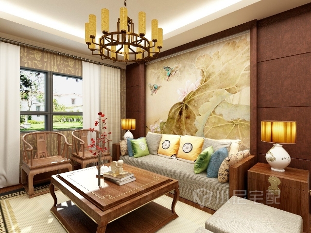 胡桃木的家具讓整個空間顯得沉穩(wěn)大氣,臺燈的樣式,茶幾邊幾的造型展現(xiàn)了濃烈的中式風(fēng)格。