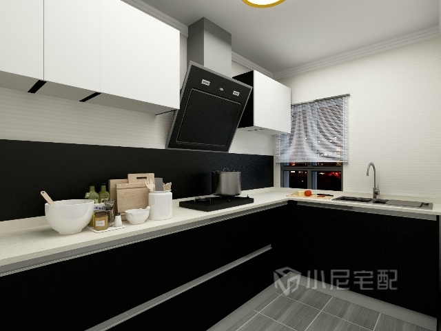 黑白簡約的櫥柜現(xiàn)代感十足,L型的設計,功能強大,符合人性化設計。
