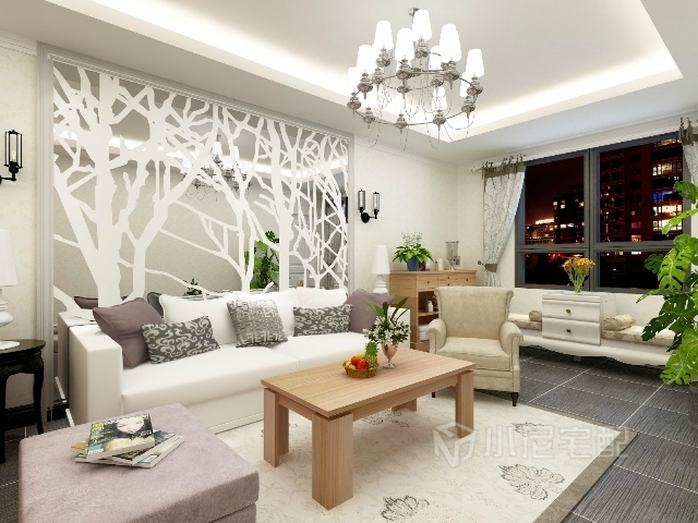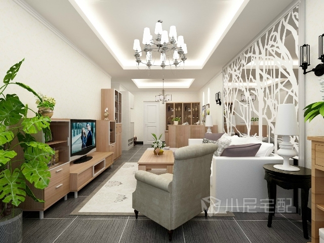 將簡約美與自然美的元素運用在空間布局之中,溫婉而典雅。色彩看起來明亮、大方,鏡面背景墻的設計使整個空間給人以開放、寬容的非凡氣度。