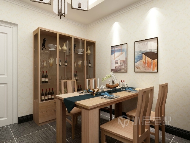 餐桌和酒柜,現(xiàn)代的裝飾畫,打造輕松活潑的就餐環(huán)境。