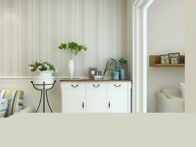 在客廳的拐角放置一個邊柜,既可以放一些裝飾品,也可以收納一些小物品。